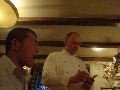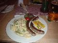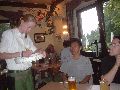 今日は日曜日なのですが、明日帰る私たちのためにミーティングをしてくれました。早く終わって走りに行きたいと言っていましたがあいにくの雨(この時期に雨は珍しいそうです)。夕ご飯はドイツらしい所が良いな!とのお願いに、山の中のレストランに連れて行って貰いました。ビールの味はわかりませんでしたが、ソーセージは本当に美味しかったですよ! |